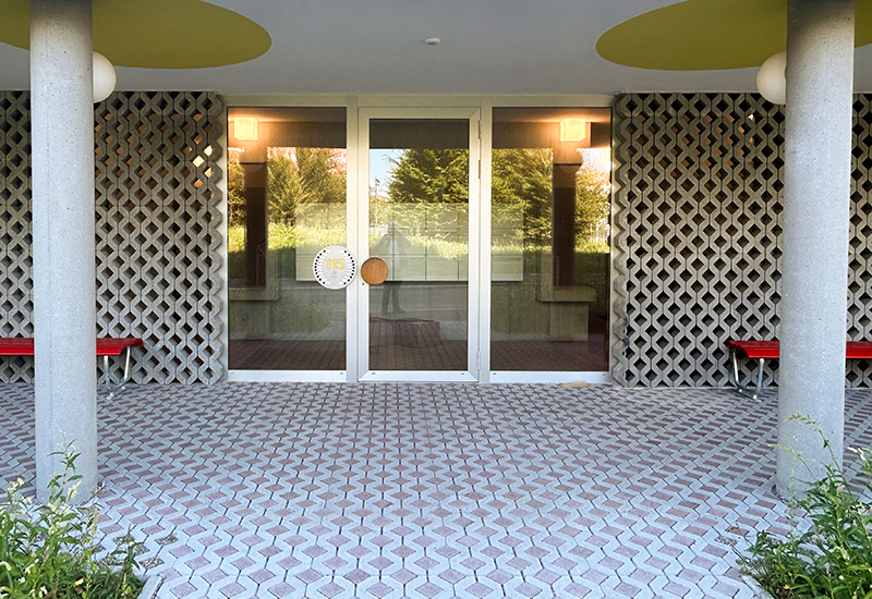 Insgesamt über 240 m2 Steine wurden um den Eingangsbereich und bei den Velounterständen verbaut. Licht- und Luftdurchlässig, und trotzdem abgetrennt? Diese Gedanken hat sich der Architekt gemacht und die Lösung in unseren GRISON Rasengittersteine gefunden.