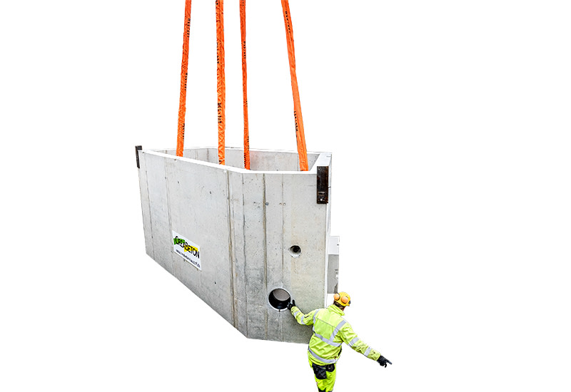 In Bischofszell hatte Marcel Wüthrich auf einmal viel Verantwortung für das Gelingen des Projekts inne – und einige Tage Arbeit vor sich. Die Betonelemente wurden gemäss den Anforderungen geplant und in enger Zusammenarbeit mit dem Werk besprochen und kontrolliert. «Das Hauptschachtteil durfte nicht schwerer als 35 Tonnen sein», nennt Wüthrich eine der Herausforderungen. Die Vorteile einer werkseitigen Produktion werden von solchen Einschränkungen aber klar wettgemacht. Die Produktion der Betonelemente kann zeitlich so präzise geplant werden, dass die Teile genau dann zum Transport auf die Baustelle bereit sind, wenn sie dort benötigt werden. Äussere Einflüsse wie das Wetter spielen bei der Vorfabrikation ebenfalls keine Rolle. «Wenn wir im Werk produzieren, ist es egal, ob es draussen heiss oder kalt ist. Die Produktionsbedingungen sind im Werk immer gleich und somit auch die Qualität der Elemente», erklärt Wüthrich. Der hohe Qualitätsstandard war ein weiteres Argument, das im Projekt von Bischofszell für die gewählte Herstellungsweise sprach.
