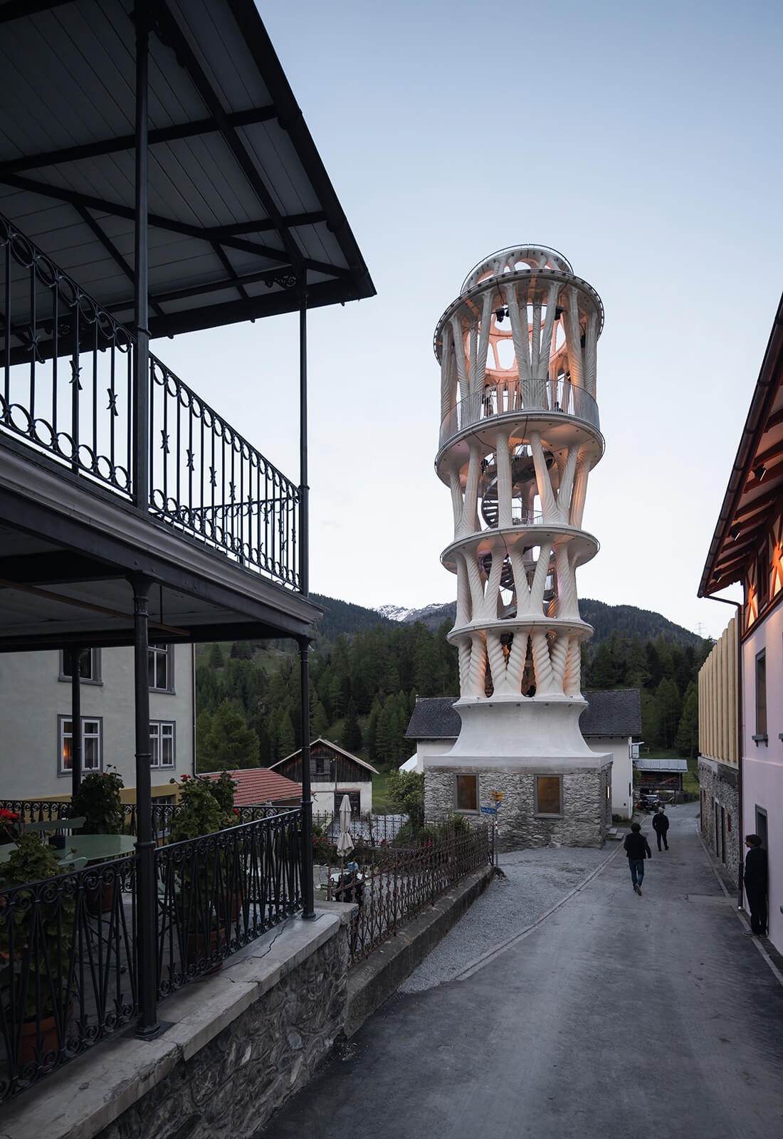 Dank modernster 3D-Druck-Technologie und einer engen Zusammenarbeit zwischen der Bauherrin Nova Fundaziun Origen, der ETH Zürich und weiteren Bündner Unternehmen wie Zindel United sowie dem Ingenieurbüro Conzett Bronzini Partner AG steht er nun – der «Tor Alva» – und kann im kleinen Bündner Dorf bestaunt werden.