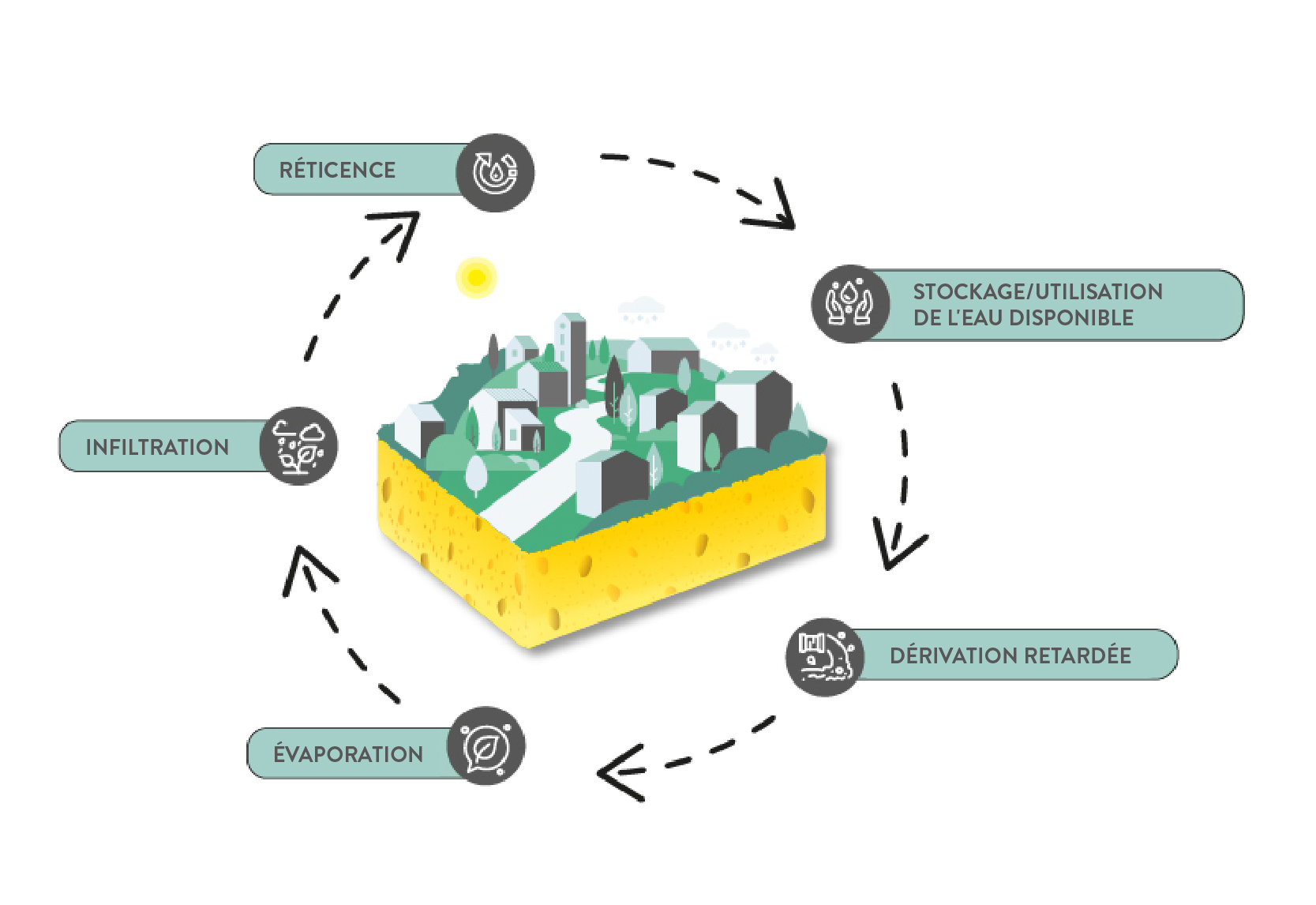 L’eau est un élément essentiel à la vie et à l’attractivité d’une ville. C’est pourquoi le concept de ville-éponge se base sur le maintien et la promotion du cycle naturel de l’eau, non seulement pour garantir l’approvisionnement des habitants, mais aussi pour contribuer à la création d’habitats naturels et à la promotion de la biodiversité.